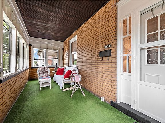 This incredibly well-built and impeccably-maintained four bedroom, two full bath brick home sits on a triple lot and includes a six bay garage! The home's interior features three levels of living space, plus original woodwork, pocket and French doors, and built-ins throughout. The main level flows beautifully from room to room, with welcoming front and rear entries, a bright and open living room, formal dining room with beautiful built-in window seat and china cupboard, a full bath, and a terrific eat-in kitchen. Head to the second level to find three very spacious bedrooms, an updated full bath, and access to the second floor covered porch overlooking the back yard. The air-conditioned and finished third floor serves as a huge fourth bedroom or additional living space. Additional highlights include a three seasons covered front porch and a large rear wood deck. Ideally located just steps from the Ambridge High School and Merchant Street's vibrant mix of shops and restaurants.