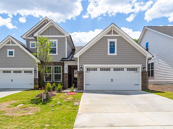 One of only 2 opportunities left to buy in Corbinton at Kildaire Farm, conveniently located in Cary! This home is a charming craftsman style duplex (Hillcrest) & is nestled at the end of a cul de sac with your front porch overlooking the woods. You will have privacy in front & behind your home ! First floor living with space upstairs totaling over 1900 sqft. Your master & secondary bedroom is on the main level w/ loft, 3rd bedroom & Bathroom up. The gourmet kitchen includes granite countertops, tile backsplash, gourmet stainless steel vented hood & 5 burner gas cooktop. Master features double vanities & large walk-in closet. Includes screened porch, frameless zero entry shower , extra windows in living room, fire place, open wood stairs, & kitchen light pendants. Please see your included beautiful design package featured in the last photo. HOA dues include lawn maintenance & much more ! December Move in !