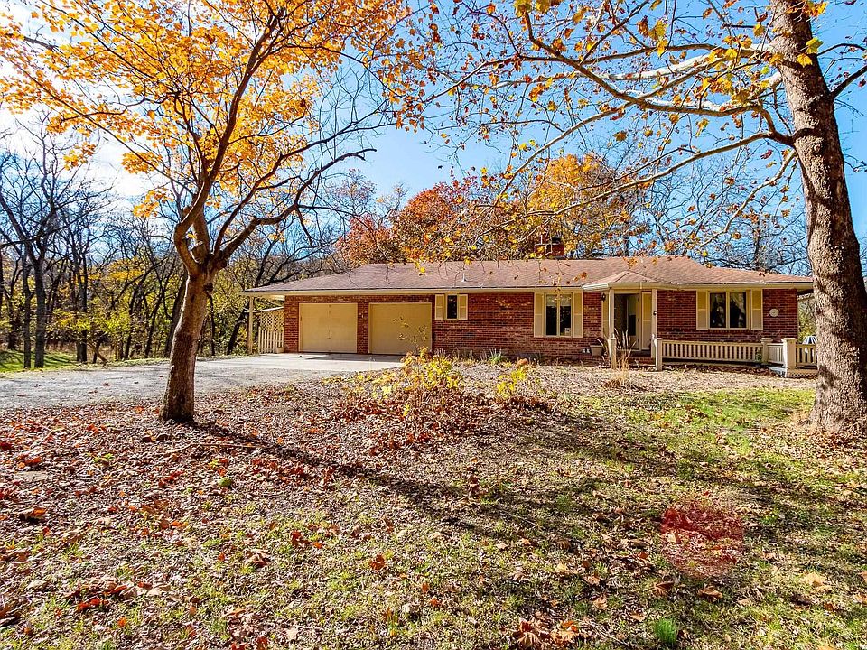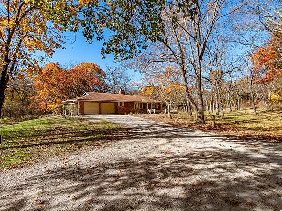 Hidden at the End of a Quiet Country Road Lies a Secluded 80+/- Acre Rural Retreat! Discover the ultimate in peace and privacy with this secluded rural paradise. Nestled at the end of a quiet dead-end road, this property offers complete privacy—you’ll see no one unless you choose to leave the property. With only a few neighbors along the road, this is truly a place where you can unwind and disconnect from the outside world while only 15 minutes from Lawrence! Classified as a Tree Farm as logging has happened periodically in the timber. This one-owner all-brick ranch home sits amid rolling timberland and a spacious, park-like yard accented by mature, well-maintained trees. The immediate surrounding timber has a network of cleared mowed paths and trails. Chicken Creek winds gracefully through the property, just behind the home, adding to the natural beauty and serenity. This solid home on a full-basement home offers timeless construction and endless potential for refreshing and customizing to your taste. Every window offers a stunning view of the surrounding timber, and both the covered front porch and covered back deck invite you to relax and take in the peaceful scenery and wildlife. This all-electric home features two fireplaces equipped with Heatolater systems, designed to circulate heated air efficiently—one even connected to the central air system for whole-house comfort. Starlink is already on-sight and works wonderfully for internet and wi-fi calling. Perfect for nature lovers and outdoor enthusiasts, the property abounds with whitetail deer and wild turkey. Whether you’re seeking a private homestead, a hunting retreat, or a quiet getaway surrounded by nature, this property offers it all. Schedule your showing today!