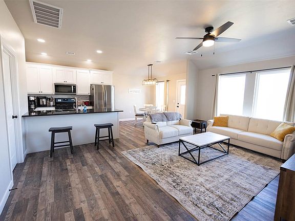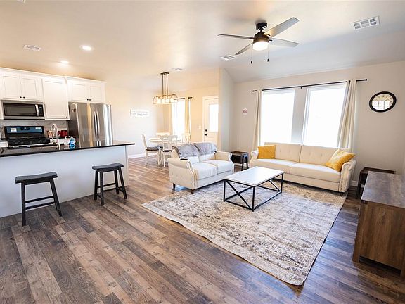 Beautiful new build that has never been lived in. Open floor concept, LVP flooring in living area, tile in bathrooms, black granite counter tops, three-bedroom, two full baths, two car garage. This property has it all. It qualifies for 100% financing. Appliances included are dishwasher, stove and microwave. Schedule a viewing today. Furniture, refrigerator, washer and dryer can be negotiated.