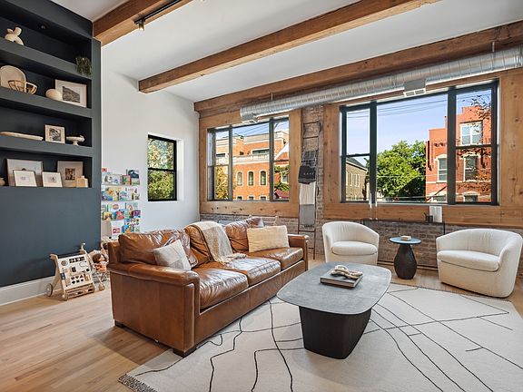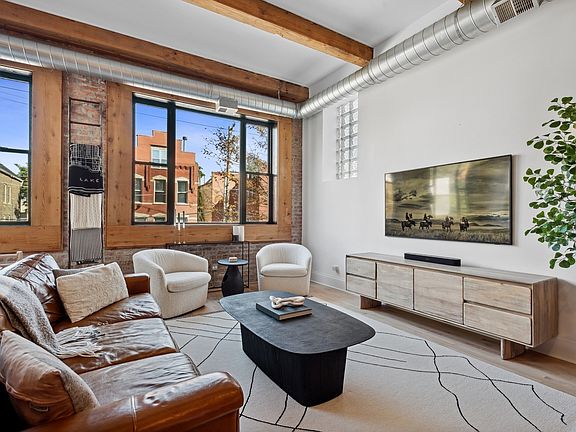 Stunning renovation of a full-floor, extra wide River West loft. Flooded with natural light and 12' ceilings with original beams, this magazine-quality home is sure to impress. Enjoy a kitchen built for entertaining with Bosch appliance package, 8' waterfall island, breakfast bar and built-in beverage fridge. The 3 bedrooms, 2.1 bath home includes a spectacular primary suite complete with private balcony and spa inspired ensuite bathroom with quartz double vanity, marble walk-in shower and separate Jacuzzi tub. 2 additional bedrooms along with the perfect den space for a home office leads to generous 20'x18' private deck. No detail has been overlooked, from custom closet buildouts in every room, all 2021 or newer appliances and mechanicals, separate laundry room with additional storage and luxury upgrades at every turn. 1 garage parking space and 1 outdoor parking pad. This charming 3-unit brick building offers you close proximity to downtown, Blue Line train stop, 90/94 access and Eckhart Park.