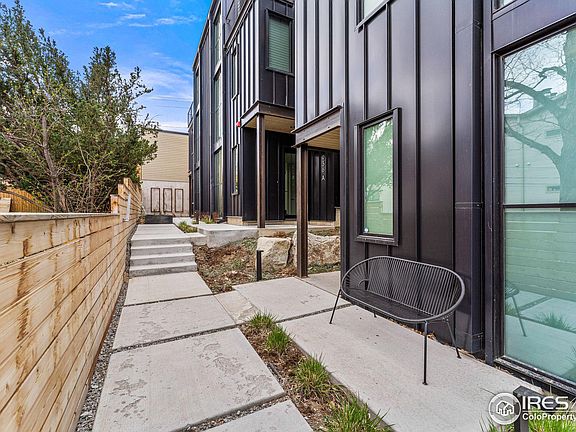 You will not want to miss out on this almost brand new, 3-bedroom condo in one of the most walkable locations in Boulder. It is located just two blocks to North Boulder Park, a short 10-minute walk to the Pearl Street Mall, has quick access to Mount Sanitas trailhead and is a few blocks to the Ideal Market shopping center. Upon entering the unit, a large entryway/flex space welcomes you into this contemporary home with its custom stair design featuring floating treads. The White Oak Flooring complements the open and bright layout, enhanced by floor-to-ceiling windows that offer mountain views. The spacious kitchen boasts a pantry, island, Bosch appliances, gas range, beverage cooler, ample cabinets, and custom lighting. Caesarstone countertops grace both the kitchen and all bathrooms. A large sliding door off the living room leads to a deck, perfect for outdoor relaxation. Convenience is key with a laundry room on the main level. Two secondary bedrooms share a full bath, while the master suite offers a private deck for personal retreats. The master bath features dual sinks, extra storage space/custom cabinets and spacious shower. Strategic window tinting provides added privacy, and custom blinds and window coverings adorn every room, adding the finishing touch to this remarkable space.The two-car attached garage includes EV charging and additional storage.