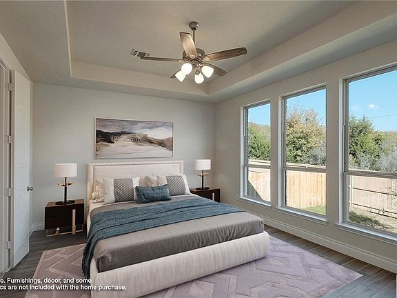 PERRY HOMES NEW CONSTRUCTION! Home office with French doors and 11-foot ceiling set at two-story entry. Open kitchen features deep walk-in pantry and generous island with built-in seating space. Dining area opens to two-story family room with wall of windows. Primary suite includes bedroom with 10-foot tray ceiling. Double doors lead to primary bath with dual vanity, garden tub, separate glass-enclosed shower and large walk-in closet. An additional bedroom is downstairs. Secondary bedrooms and game room with 10-foot tray ceiling are upstairs. Covered backyard patio. Mud room off two-car garage.