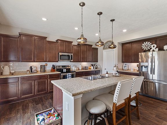 No need to build. Home looks brand new w/upgrades already completed. Family room: wood burning stacked stone fireplace w/ shiplap. Yard already in & on pond lot. Kitchen: large island, SS appliances, staggered height birch cabinets in Kona color w/crown molding, new tile backsplash & under cabinet lighting. Open concept w/ 2 panel doors, spindled staircase, shiplap wall, quartz countertops on Pullman height vanities, office w/chair rail & batten board, LVP flooring, walk-in closets. Master: 2 walk-in closets, 5 ft shower, double Pullman height vanity w/qrtz tops. 3 car garage that is 34 ft x 29 ft