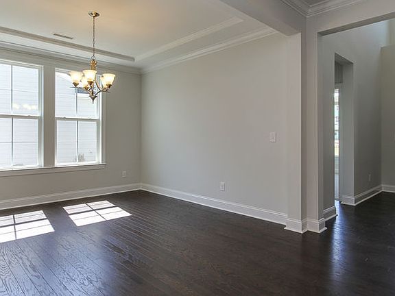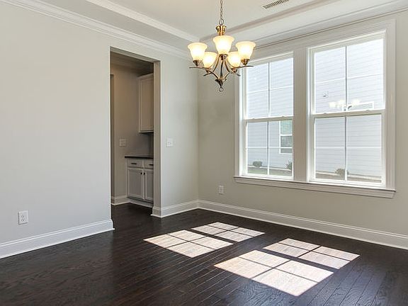 The Devon's centerpiece Great Room, appointed with a fireplace, lies at the end of a high-ceilinged foyer. The luxury townhome's Great Room opens to a covered patio, which can be extended and converted to a screened-in porch or morning room, and also flows into the island kitchen. The designer kitchen, which overlooks the breakfast nook, offers an optional butler's pantry and includes maple cabinetry, granite countertops, and Whirlpool appliances. The first-floor owner's suite, with a spacious walk-in closet, features a shower-and-tub combination, with an option to convert to a deluxe shower. Another bedroom, with its own full bath, can be converted to a flex room with a powder room. Upstairs, the loft, which overlooks the foyer, adjoins a room that can be adapted into a third bedroom, with a third full bathroom, in the Devon.
