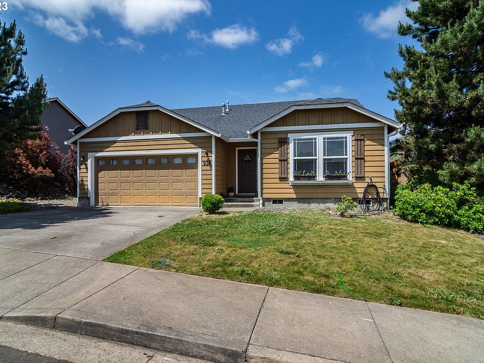 This 3 bedroom single level home in Roseburg has it all. Obtain the neighborhood living you want, surrounded by mountain views, with easy access to I-5, located in the desirable Rolling Hills area. Spacious entry way leads to an open-concept floor plan, with vaulted ceilings and luxury vinyl plank flooring throughout the main living space. Primary Suite complete with vaulted ceilings, double walk-in closets and suite bathroom hosts double sinks. Kitchen features an island, tile back splash, custom cabinetry, soft-close drawers, a pantry, and opens to the light and bright dining space. Sliding glass door leads to a large fenced yard that has an adjacent cross-fenced side yard, complete with a play-yard, padded with low maintenance, rubber bark mulch. Opposite side yard holds a tool shed/workshop for your tools/hobbies. Both electric and gas plumbed to the house. Heat pump blows hot and cold air for the perfect temperature. Complete with full laundry room and spacious two car garage. Home is priced to sell! Don't miss out. Schedule your showing today.
