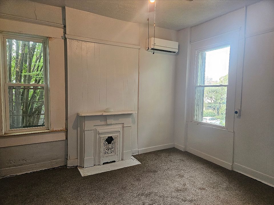 Studio available immediately. Wall mount for heat and cooling. Carpet in main room with vinyl in kitchen/bathroom. Renter pays for LGE.