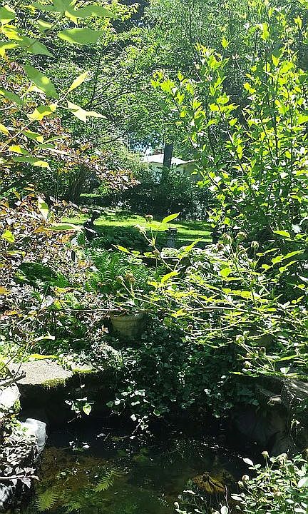 mid century ranch with 1000+sq ft addition in 2001, small zen garden in large private backyard full of wildlife. new hvac and updated kitchen with quartz counters in 2016, new roof, gutters, siding and garage doors in 2017. Two oversize garages. solar panels to reduce electric costs