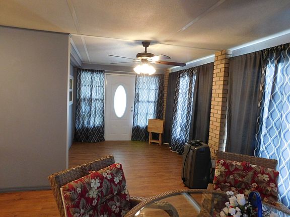 CHECK OUT THIS BEAUTIFUL HOT TUB HOME!! This spacious and open home in Buccaneer Estates is TOTALLY REHABBED and tastefully appointed. It is FURNISHED and is a 1978 Classic. It is truly unique in its offerings. The owner is very motivated, and has just issued a drastic price reduction in this fantastic home. You must visit and tour before it's gone at this reduced price. The FRONT ROOM which has three ceiling fans -- originally an enclosed lanai -- is fully finished with laminate flooring, finished walls and ceilings, with multiple windows and beautifully decorated side door. This large, approximately 22' x 24' room opens to the living/dining rooms. The formal DINING ROOM is furnished with a stone-look table and 8 leather chairs. Connecting the KITCHEN to the DINING ROOM is a new breakfast bar and two comfortable bar chairs. The KITCHEN is quite large, offering all appliances, including above-range microwave, newer stove, dishwasher and side-by-side refrigerator. There are ample cabinets, counter space and a large pantry. Everything is beautifully updated. It has a hall broom closet for extra storage. The fully furnished GUEST BEDROOM has queen bed and is attractively appointed. The GUEST BATH has long sink counter with door and drawer storage, the typical tub/shower, and an elongated updated toilet. The large MASTER SUITE offers a king size bed, large dresser/mirror, two large nightstands and matching chest of drawers. This suite offers a large walk-in closet, long sink counter with storage below, and stool/shower behind a privacy door. The home has new paint throughout on ceilings and walls. Laminate floors throughout. All doors are raised panel. Many ceiling fans. This is a must see and experience home. The enclosed SCREENED LANAI off the driveway sports a beautiful HOT TUB (approx. cost $7,000.) At the back of the lanai is the doored shed with newer washer/dryer. The back yard is fenced - perfect for a small pet - and is approximately 6 ft high, and offers another storage building. This home is in the pet area, and the property backs up to the woods. This outstanding home also has the BIG THREE: Lap Siding, Metal Roofover and new A/C/Heat. When you tour this beautiful home, you will agree it is indeed an outstanding, tremendous value at $28,500! Please call me for a personal tour. Agent Clyde Spicer, Home Folks Mobile Homes, Inc. (No emails, please.) Buccaneer Estates requires all residents to qualify for credit and background.