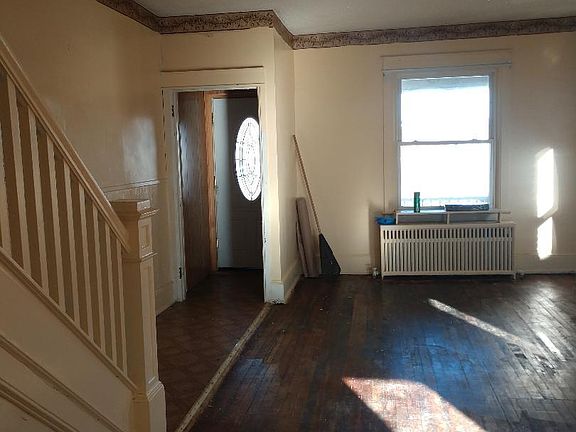 Brick, end of row with 3 BRs, 1 bath, hardwood. 1st floor laundry, combo living & dining room. High ceilings & lots of light. Owners can't do repairs or occupancy permits. Gas heat. Bring an offer!!