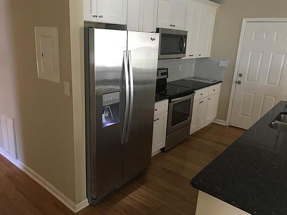FEATURES #Large, open floorplan (conjoined living room, dining room, kitchen) #Each bedroom features its own private bathroom and LARGE closets #Beautiful kitchen w/ stainless steel appliances, granite countertops, and craftsman cabinets #Large front porch #Cute front yard and HUGE back yard #Full-sized, side-by-side washer and dryer included #Dishwasher, Stove, Microwave, and Refrigerator included #Hardwood and Tiled Floors throughout (no carpet) #Long driveway with ample parking #All Electric Appliances and Utilities #Lots of natural light #House size: 1800 sq/ft.