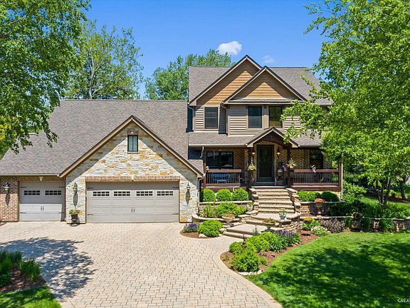 Absolutely stunning! Owner is the builder on this home so pride of quality construction and attention to detail throughout! Beautiful lot backing to nature area with spectacular views and your own waterfall/pond! Great curb appeal stands up tall! Covered front porch perfect for summer nights! Gorgeous designer eat-in kitchen with breakfast bar, custom cabinetry, granite countertops, stainless steel appliances, tile backsplash and stove spicket for filling pots opens to the cozy family room with custom built-ins, stone fireplace, crown molding and great views thru the picture window! Separate formal dining room with wainscoting, crown molding, pan ceiling and French doors to the sun porch with vaulted ceilings and tile flooring perfect for sitting and listening to the rushing water of the waterfall! 1st floor den with French doors, wainscoting and exposed beams! Separate living room with brick fireplace, vaulted ceiling and extra lighting! Convenient 1st floor master bedroom with wainscoting, crown molding, chair rail, double closets and luxury bath with heated floors, walk-in shower with body sprayers, soaker tub and custom tile work! 1st floor laundry! 2nd floor loft could easily be 4th bedroom! Gracious size bedrooms, one with private bath! Finished English basement with rec/flex room and huge storage area that walks up to garage! Zoned heating & cooling! Unheard of 80 yr roof! Inground sprinkler, central vacuum, knotty Alder interior doors, wrought iron spindles and epoxied garage floor! Attention to detail throughout! Quick access to I-90 and shopping! Best value on the market hands down! 10+!