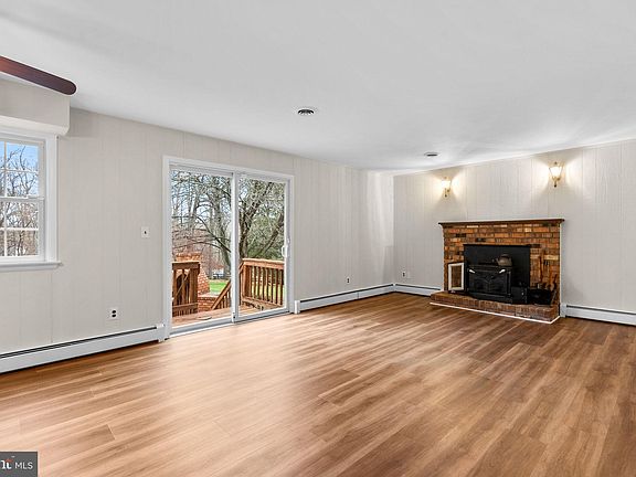 Inviting ranch-style home with modern updates on nearly an acre in Mount Hebron, offering 3,288 square feet, 5 bedrooms, 3 full baths, 1 half bath, and a 2-car garage. Curb appeal shines with lush landscaping, brick accents, classic green shutters, and a welcoming front porch. Step through the double-door entry into a traditional main-level layout. The foyer, complete with a convenient powder room, opens to a flexible bedroom or office and a formal dining room adorned with vinyl floors, chair railing, and an elegant chandelier. The spacious family room offers a cozy wood-burning stove, deck access, and a nearby laundry room for added convenience. The updated eat-in kitchen combines functionality and charm, featuring ample cabinetry, select sleek black appliances, a writing station, a pantry, a raised ceiling, and garage access. Seamlessly connected is the stunning sunroom with cedar-vaulted ceilings and exterior access. The upper level includes 4 generously sized bedrooms with hardwood floors and ample closet space. The opulent owner’s suite features a private ensuite bathroom, while an additional full bathroom with double sinks serves the remaining bedrooms. The fully finished lower level is an entertainer’s dream, offering a large recreation room with a brick-adorned wood-burning fireplace, built-ins, a bar area, a full bathroom, and walk-up exterior access. This level also includes a utility or storage room. Outdoor living is a highlight, with a deck that steps down to a gorgeous stone patio featuring an outdoor fireplace. Beautiful landscaping surrounds the expansive yard, providing a serene retreat.