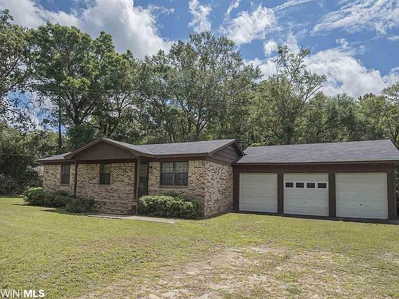 Enjoy country living on this beautiful 2 acre lot. It boasts a brick home with 3 car garage, hardwood floors, and 20 minute drive from Bay Minette. Must see to appreciate, a lot of potential at an incredible price!!! NEW ROOF IN 2018.
