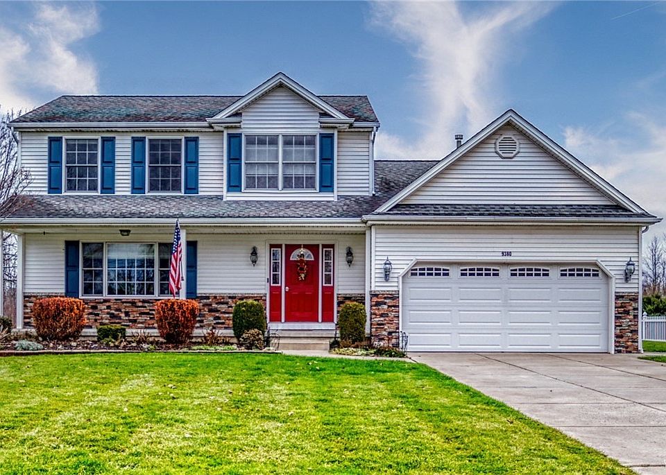OPEN HOUSE ON FEB 19 IS CANCELLED. PROPERTY IS UNDER CONTRACT. Lovely colonial style home on almost a full acre in highly rated Clarence School District. A large covered front porch welcomes you as you enter and ceramic tiled flooring lead to a large updated country kitchen, new quartz countertops and island, and stainless steel appliances. Pocket door connects kitchen to first floor laundry and walk-in pantry. Great open floor plan leads from kitchen to a spacious family room with vaulted ceiling, gleaming tigerwood flooring and a gas fireplace. Formal dining room also has hardwood flooring and plenty of natural light. Second includes floor master bedroom with cathedral ceiling and master bath, and 2 additional good sized bedrooms and 2nd full bath. Sliding glass doors lead from kitchen to concrete patio and large, partly wooded back yard.