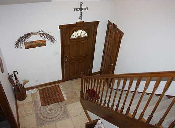 PRIVATE RETREAT, 5 ACRES WITH LOTS OF WOODS, STOCKED POND WITH COVERED BRIDGE LEADING TO ISLAND, 3 BEDROOMS, 3 FULL BATHS, TRAVERTINE TILE IN 2 STORY FOYER, LARGE KITCHEN W/LOTS OF CABINETS AND CERAMIC TILE FLOORING, 40X40 POLE BARN W/CONCRETE FLOOR AND ELECTRIC, MASTER SUITE WITH ATTACHED BATH AND JACUZZI TUB, LARGE FRONT PORCH, SIX PANEL DOORS THROUGHOUT WITH UPGRADED WOODWORK/TRIM,HUGE BONUS ROOM/4TH BEDROOM. DECK WITH PRIVATE BACKYARD