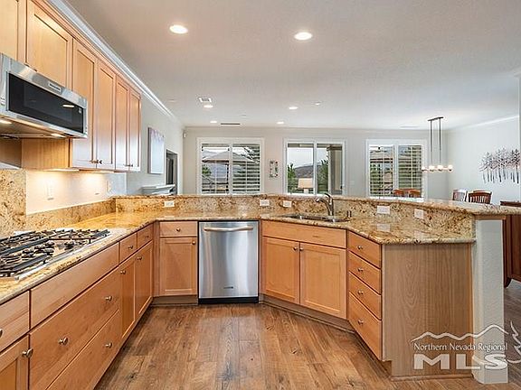 This stunning, view home in Sierra Canyon offers everything you would expect to find in a 55+ community. 9380 Rockhurst Court is pristine, meticulously maintained and features over $115,000 in builder upgrades and after-market improvements throughout 1806sf with 2 bedrooms PLUS an office/optional 3rd bedroom and 2 full bathrooms. From the Mannington Historic Oak laminate wood flooring to the Caf Crme granite countertops, no detail has been overlooked!