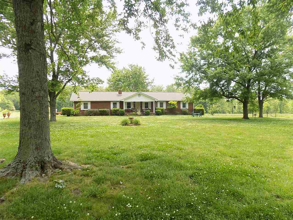 DREAM FARM!! Well appointed Brick home located on approx 16.6 acres featuring: Beautiful fenced farm ,new large barn,creek and approx 1 acre recently stocked pond with 200 catfish!!! Perfect for cattle or horses nice balance of open pasture and trees. New energy efficient windows,energy saving insulation package, hardwood floor,ceramic baths , lots of bonus storage space, basement with storm shelter plus hobby area,Large patio area,covered porch, super sized laundry,bonus room with 3 pantry cabinets, office, 3 bedrooms, 2 baths, stove 2 yrs old, dishwasher 6 months, CH&A 5-6 yrs, new roof 2012. Home has a nice flowing floor plan all on one level. Call now to be the first to see!!!