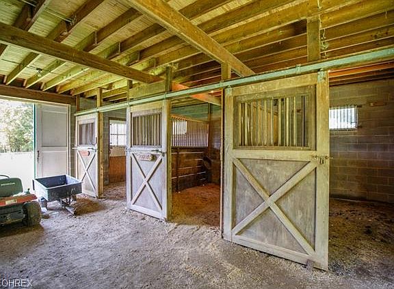 Over 5 acres in beautiful Kirtland Hills. This home offers nearly 3000 square feet of living space. Four stall horse barn with tack room and loft for hay, fenced pasture. Eat-in kitchen with all appliances, granite countertops, vaulted ceiling with 3 large skylights for a bright kitchen. Dining room, great room 28x16 with brick fireplace and vaulted ceiling. Office with built-ins. Master bedroom with full bath. 4 bedrooms. 2 full baths. 2 half baths. Rec Room. Basement with workshop. 2 car garage. Beautiful private setting. Great for horses or someone looking for property.