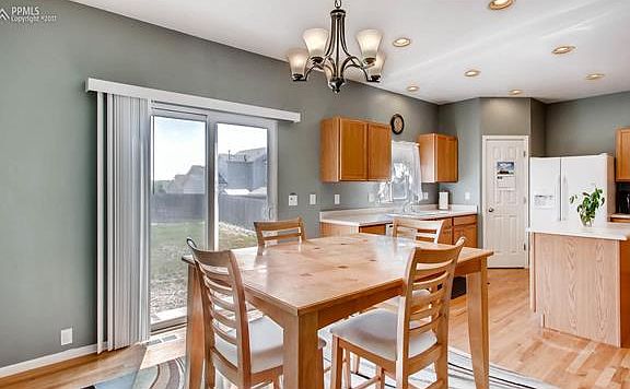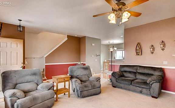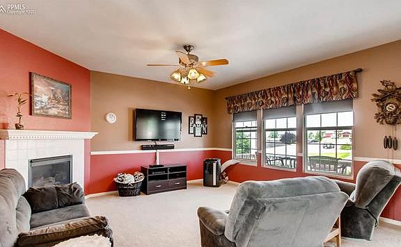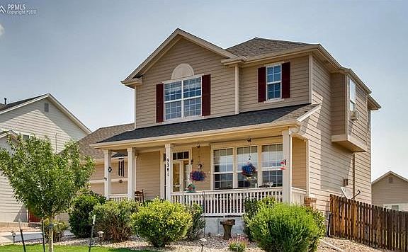 Wonderful Woodman Hills 2 story features a covered front porch, Front room fireplace , Lg open Kitchen/Dining area w/walk-in pantry & island for lots of counter space! Large backyard w/patio. 3 bedrooms & laundry on the upper level. Master w/his&her closets, adjoining bath & double vanity. Secondary bedrooms w/full Jack 'n Jill bathroom. Awesome floor plan! Popular community offers 2 Rec centers w/both indoor & outdoor pools, fitness center & golf course! Great D-49 schools, shopping & not far from all 4 military bases! Monthly fee for water/rec/street lights runs approximately $165 per month & is mandatory. Varies due to water consumption.