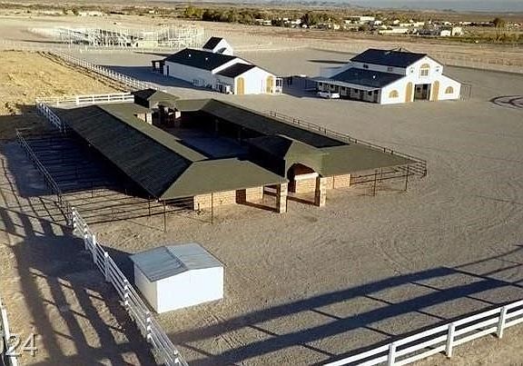 This is a unique and amazing opportunity to own a 30-acre ranch horse property with 30 acre-feet of water rights in Pahrump! The property has amazing equestrian features, such as a horse race track with 3000+/- seat metal seating stadium, 19+/- horse stalls & a stable with living quarters on the second floor, a meeting hall with public bathrooms, and multiple structures outbuildings! Potential use for an equestrian center, Hemp Farm or be subdivided for residential lots. Split zoning, with RH 4.5-Residential. The property needs TLC and the posted pictures are what the property previously looked like. To be Sold AS-IS. The water rights permit and certificate are in good standing Nevada Division of Water Resources. For pumpage inventories for Pahrump Basin, see link. https://tools.water.nv.gov/PumpageInventoryFiles.aspx.