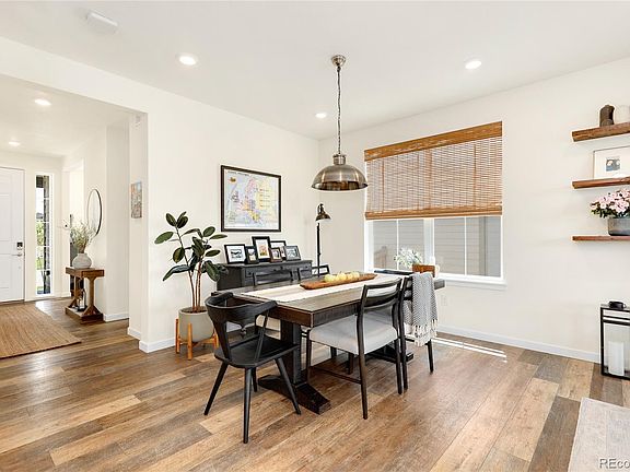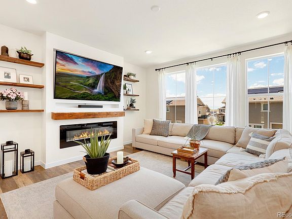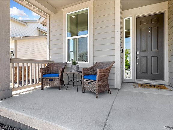 The quality and style are undeniable at this better-than-new two-story home tucked away in the Buffalo Highlands community! A charming front porch welcomes you into the turn-key interior that delights with tall ceilings, brilliant natural light, neutral paint, modern recessed lighting, and upgraded finishes throughout. Graciously accommodate family and friends year-round from the spacious open concept floorplan that connects seamlessly to the deck via a sliding glass door. A sleek electric fireplace flanked by floating shelves and a handsome wood mantle anchors the living room and provides warmth on chilly evenings. The home chef will love the well-appointed kitchen that features lovely granite countertops, abundant cabinet space, an expansive island with seating, a pantry, and stainless steel appliances including a gas range. The main floor is completed by access to the three-car garage, a powder room, and a dedicated office. All four bedrooms and the laundry room are conveniently located on the upper level. Three sizable bedrooms share a full bathroom with double sinks while the primary suite enjoys a tray ceiling, a walk-in closet, and a private bathroom complete with double sinks atop a granite countertop. 1,000+ sq ft unfinished walkout basement provides options for storage or future living space. Don't miss the fantastic outdoor living space that includes a fenced backyard, a gas line ready for your firepit, extensive landscaping, and a covered patio. Great location in a quiet neighborhood with quick access to E470, trails, and the Rocky Mountain Arsenal.