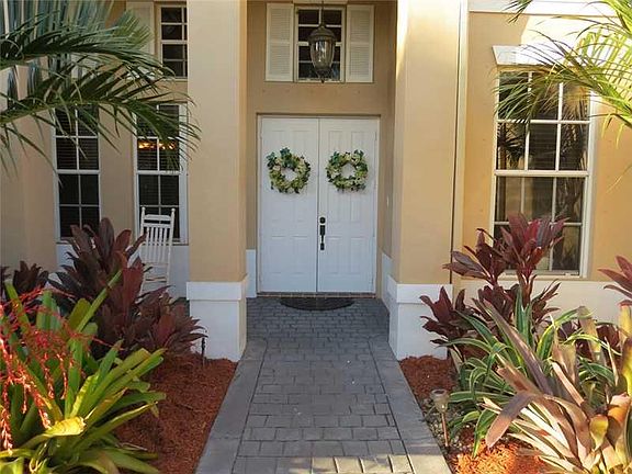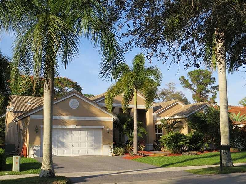 Beautifully maintained home backing up to 102 acre Pine Island Ridge. With no neighbors behind you, enjoy views of live oak trees and walk the nature path leading to 243 acre Tree Tops Park. Featuring a split floor plan with volume ceilings, 4 bedrooms + den/office or 5th bedroom. Kitchen with granite & stainless steel, volume ceilings & brick fireplace. Tile and wood laminate throughout. Pool remarcited 2013, gorgeous travertine deck, new gutters 2012, A/C 2009, Roof 2006. This is a wonderful home!