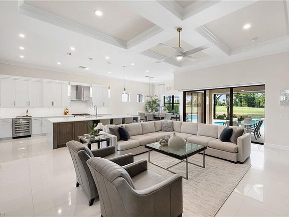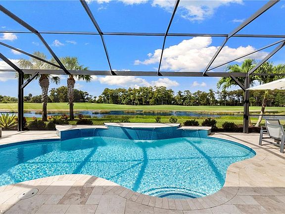 A true showpiece of modern luxury, this one of a kind Pinnacle model in Greyhawk has been reimagined through more than $400,000 in high end designer renovations, creating a residence that is as sophisticated as it is effortlessly livable. Every inch of the home has been thoughtfully curated with top tier materials, refined craftsmanship, and timeless design. The all new custom kitchen serves as the heart of the home, showcasing Thermador appliances, 48 inch shaker cabinetry, dual pantries with pullout inserts, quartz countertops and backsplash, a waterfall island, and a Galley sink and faucet system, a chef’s dream. The great room impresses with a stacked stone feature wall, custom built ins, and LED lit floating shelving, all opening through zero corner impact sliders to a breathtaking outdoor oasis. The expansive lanai features travertine flooring, a full outdoor kitchen, StormSmart hurricane screens, and a heated saltwater pool with LED fountain lighting, all overlooking tranquil sunset water and golf views. Inside, elegant details abound including custom wood accents, coffered ceilings, designer lighting, remote controlled window treatments, and upgraded finishes throughout. The primary suite offers a California Closets system with integrated lighting and a fully renovated spa bath clad in Italian Bianco Dolomite porcelain tile with quartz countertops, a freestanding soaking tub, and a seamless glass shower. Each bathroom and the laundry room have been upgraded with quartz surfaces, upgraded fixtures, and modern tilework. Additional upgrades include a whole house Generac generator, air and water filtration systems, new impact glass windows and doors, Nest smart thermostats, and a comprehensive ADT security system with outdoor cameras. The extended four foot garage is finished with epoxy floors, quartz topped cabinetry, and insulated doors with attic ventilation. Perfectly positioned on one of the community’s most private lots with no homes in front or behind, this property offers unmatched serenity and style. Greyhawk residents enjoy resort style amenities including a lagoon pool and spa, tennis and pickleball courts, fitness center, full service restaurant and bar, and a social golf membership to The Golf Club of the Everglades. This home is a masterclass in design and craftsmanship, one of the finest offerings ever presented in Greyhawk.