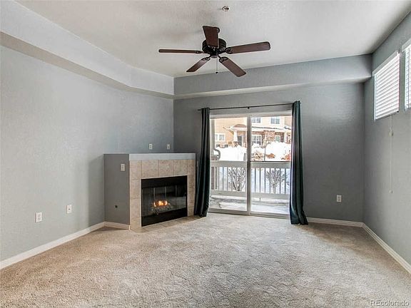 Spacious End Unit Condominium! 2 Bedrooms, 2 Bathrooms featuring over 1,200 square feet located within the Highlands at Stonegate Community. Excellent location with convenient access to E470, DIA, I25, Meridian, DTC and Downtown Parker shopping, dining and events. This home showcases a casual open concept Living Room with ceiling fan, fireplace and access to the private outdoor covered patio with storage. Dining Room plus Kitchen with island/breakfast bar, tile flooring, tile backsplash, pantry and all appliances providing ample room for entertaining or casual gatherings. Laundry with washer/dyer included! Generously sized secondary Bedroom with large closet plus Full Bathroom and linen closet for storage. The private Master Bedroom showcases a walk-in closet, ceiling fan and en-suite Full Bathroom with double vanity. One Reserved - Exclusive Use parking space plus additional guest parking available. Enjoy the exclusive amenities of the Stonegate community offering award winning schools, parks, pools and miles of walking/biking trails. Don't miss this opportunity!