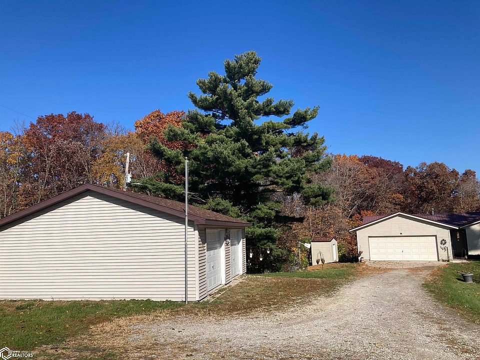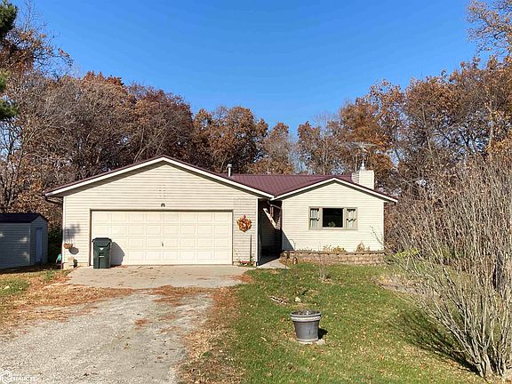 Wooded setting 2 bedroom 2 renovated full sized bathrooms. Approximately 9.79 acres more or less. Spacious living room with fireplace. 2 car attached garage and additional 2 car detached garage/workshop. Kitchen/dining combination with solid wood cabinets and countertop space for meals. Enjoy a cup of coffee on your 3 season room off of kitchen. Primary bedroom has space for king sized bed. Plenty of room in primary bedroom walk in closet. Basement has a nonconforming bedroom, sewing room & extra storage space. Close to town. Very spacious wooded backyard.