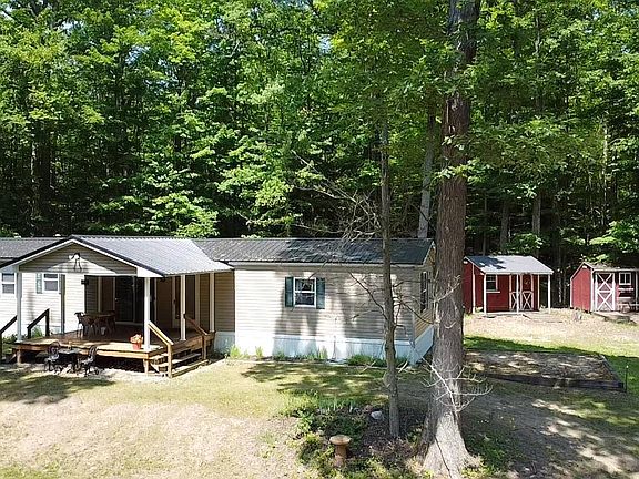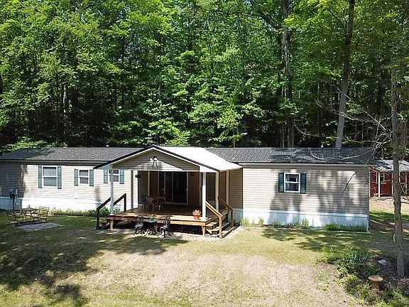 27.82 Acres with over 900 feet of river frontage on Bear Creek. 3 bedroom, 2 bath home built in 2000 with a new steel roof installed 2022 and a large covered porch to sit and relax. 30'x30' pole barn built in 2018 with electric, concrete floor and 16'x8' overhead door. Additional covered metal building to store your boat or vehicle as well as two other storage garden sheds. Mature hardwoods make up the acreage and is bordering Federal Land with an additional 14,000 acres right out your door. South East corner of the property is across the street from the Manistee River/ Bear Creek Boat Access. River frontage and Acreage to fish, hunt, hike, bike, kayak, snowmobile, and much more. If that was not enough you are 10 miles from Lake Michigan and a short drive to golf, ski and other lakes.