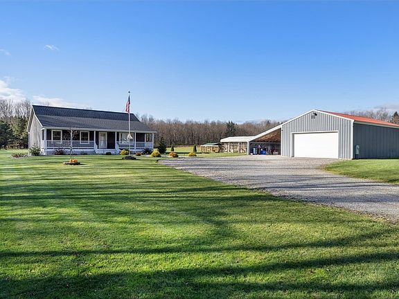 Look no further! This 5 year young ranch is utter perfection! Set on just under 3 acres with so much to offer. The front porch stretches along the front of the house - plenty of room to relax on! First thing you'll notice upon entering is how well the spacious living room with gas fireplace flows into the kitchen & dining areas. Plenty of cabinetry, beautiful quartz countertops and fully applianced. Master suite has full bathroom with large shower, 2 additional bedrooms plus another full bath on this main level. Lower level has a 4th bedroom (with egress) plus a 3rd full bath. There is also a den/office to suite your needs. Still plenty of unfinsihed basement space for storage, etc. Plenty of upgrades including central vac, on demand hot water, hook up for generator just to name a few. Detached garage has a workshop area and EV charging area, and there is a carport to fit additional cars, toys. Also, property comes with a chicken coop & greenhouse.