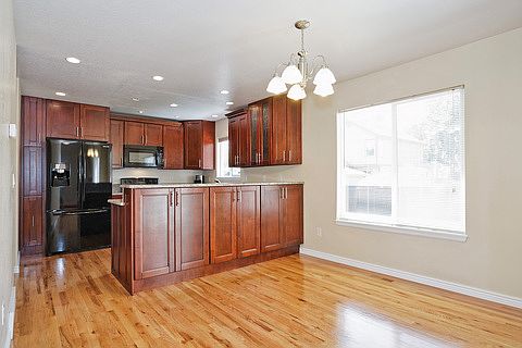 Lots of updating and upgrading in this affordable 2story home that is fully finished including the basement This open floor plan offers 3 beds up a wonderful Great Room with soaring ceiling ceiling fan fireplace and a built in TV niche with adjustable shelving There is a lot of hardwood flooring on the main level including all traffic areas the dining room and the kitchen The kitchen is sure to please as it has been fully UPGRADED with new custom cabinetry granite slab countertops and all new matching appliances There is plenty of cabinet space upgraded canned lighting and handy breakfast bar for eating on the go The Spacious Master Suite offers vaulted ceiling upgraded ceiling fan walkin closet private sink and vanity area The upper full bath has been updated with a beautiful new vanity and sink The recently remodeled basement includes a room that makes a nice 4th bedroom office or play room There is a closet and private updated bathroom with shower attached Other highlights include CENTRAL AIR 3 ceiling fans upgraded light fixtures throughout new rockerstyle switch plates and outlet covers throughout The nice clothes washer and dryer stay too Outside youll find the yard is fully manicured level and fenced This beautiful home is just minutes from the EAST GATE at Peterson AFB whether for work or shopping convenience and just 10 minutes out to Schriever AFB or Ft Carson Theres nothing to do but movein and enjoy