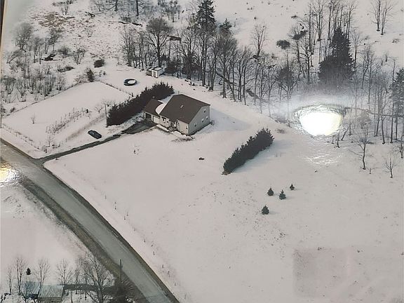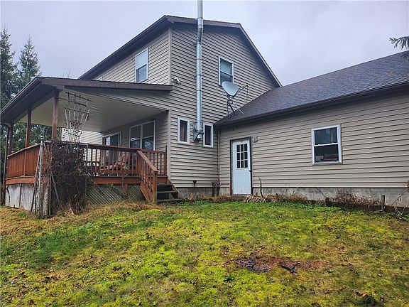 Cape Cod style home with open floor plan, sliding glass doors lead to covered deck with picturesque view overlooking 33.93 partially wooded acres. 1st floor bedroom with bathroom/laundry combo. Entryway leads upstairs to 2 bedrooms, full bath and walk in storage areas. Full basement. Livingroom with wood burning stove, forced air furnace for main heat. Property includes several acres of blueberry bushes, fruit trees and a stream. Property selling to settle estate- no repairs will be made. Twilight showing Wednesday 2/28 6pm-7:30pm. Open house Saturday, 3/2 1pm-3pm.