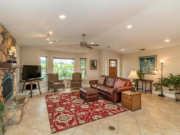 Charming country home built in 2004. This 4-bedroom 2 &1/2-bath screams for a family that wants room to play. Bring all your pets & animals for the best of country living. It's 4-H ready. This 1.3 Acres includes a 4 stall barn, fencing for horses, smaller pens for other animals as well as storage rooms and a tack room. Enjoy the Riding arena, separate pastures, large carport for RVs & other equipment. Backyard has a beautiful back deck to barbeque and soak it all in. Inside you'll find a River Rock fireplace in the great room with gas fireplace. Bay windows are located in both living & dining rooms. Home has all tile floors except for carpet in bedrooms. Granite tile on counter tops in kitchen & baths. Beautiful custom kitchen with built in appliances, Breakfast bar off great room with ample counter space. Oversized master-suite w/ fireplace, shower and jetted tub plus walk in closet.. Oversized laundry area with glass block windows & large walk-in pantry. Two-car garage with built-in cabinets. Irrigation district is CID. Home also has natural gas. Entire property is fenced. This is a must-see.