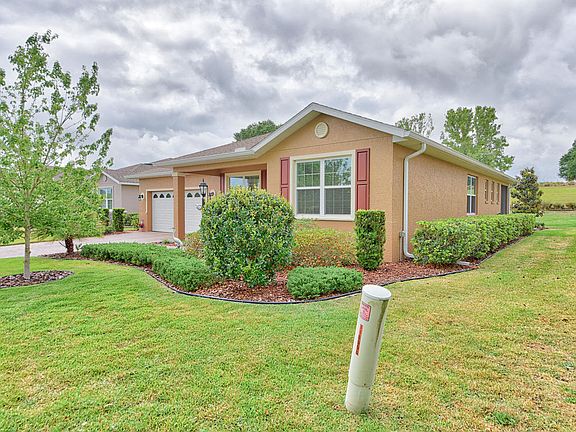 Beautiful Alban model located in Windsor East on a golf course and comes with 2 bedrooms, 2 baths, office plus flex room, & 2+ car garage with enough room for your golf cart.Garage door and ceiling are insulated. Beautiful paver driveway and walk. Amazing kitchen (choice of gas or electric cooktop&dryer) with granite counters & stone backsplash, under counter lights, crown molding, breakfast bar and nook. Custom tile in master shower, double vanity, bronze fixtures & hardware. Owner's entry & inside utility rm w/custom cabinets & granite counters. Custom blinds thru-out. Gas grill included. Very private backyard on 17th tee, 18th hole. This home is move in ready! Located in Ocala's premier, gated, 55+ community, loaded with amenities, including golf cart access to two shopping centers. Dining table and 4 chairs, bird picture and lanai furniture are negotiable.