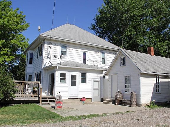 Large farm house on 2.68 acres only 1/4 mile off the highway. Owners just had a new septic tank installed. There are several outbuildings, including a 24 X 48 machine shed with dirt floor and a livestock barn with hydrant and cattle waterer. There are 3 bedrooms up and potential of a 4th on the main level. In 1989 a 20 X 20 family room addition was added making for great living area, with a wood burner.