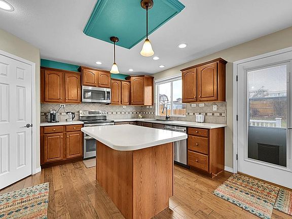 Outstanding home in the highly sought-after Briargate community, celebrated for its award-winning D-20 schools. This thoughtfully designed residence boasts an open floor plan, gleaming hardwood floors, and a fantastic kitchen. Step outside to a composite deck and a fully fenced, pet-friendly backyard complete with a firepit and dog run, perfect for outdoor gatherings. Conveniently located near parks, schools, trails, and shopping, this home embodies the best of Briargate living. Inside, you'll find an inviting living room with custom built-ins and a cozy gas fireplace, ideal for chilly Colorado evenings. Versatile office space and a spacious dining area on main level that opens to the kitchen with stainless steel appliances, ample cabinetry, generous counter space, and a large pantry. The primary suite includes a tiled 5-piece bathroom with dual vanities and a walk-in closet. Two additional bedrooms and a full bathroom are also located on the upper level, while the finished basement offers two more bedrooms, tiled bathroom, and storage space. Enjoy central air conditioning and main-level laundry room. Additional upgrades include a brand-new furnace, hot water heater, and fresh carpet. Make this house your home today!