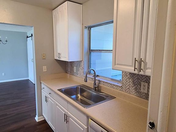 Charming move in ready 3/2/1 home offers a spacious living room/dining room combo with brand new vinyl plank flooring throughout the entire home. Kitchen has brand new large single bowl stainless steel sink and faucet, as well as freshly painted wood cabinets with a herringbone backsplash. Kitchen leads to an indoor laundry room. Primary bedroom features a walk-in closet and has a beautifully remodeled en-suite bathroom. Hall bath is also newly remodeled. Third bedroom features a closet and double barn doors making it ideal to use as a flex space. This home is newly repainted and has new lighting fixtures throughout. Air conditioning was replaced in 2021 and a new roof was installed with architectural shingles in 2022. Home is close to shopping, restaurants and a local park. This listing won't last long.