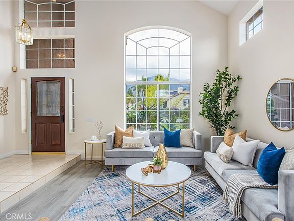 STUNNING Move-In Ready Home in Rancho Cucamonga! Welcome to this beautiful 4-bedroom, 3-bathroom home spanning 2,365 sq. ft., designed for both comfort and style. Located in a highly desirable neighborhood within the ALTA LOMA SCHOOL DISTRICT, this home offers the perfect blend of convenience and elegance. Step inside to discover a bright and open formal living and dining room, highlighted by SOARING VAULTED CEILINGS and large windows that frame BREATHTAKING MOUNTAIN VIEWS. The UPDATED LUXURY VINYL FLOORING flows seamlessly through this GORGEOUS HOME. The BEAUTIFULLY REMODELED KITCHEN boasts REAL STONE COUNTERTOPS, MODERN CABINETRY, NEW HIGH-END STAINLESS APPLIANCES, including a Bosch refrigerator and dishwasher, large single basin sink and a reverse osmosis system which delivers much cleaner drinking water. Also, don't miss the very sleek black glass Robam 30" range hood. Along with the refrigerator in the kitchen, the LG ThinkQ Washer and Dryer are included in the sale. A cozy family room sits just off the kitchen with a modern fireplace, creating a welcoming space for gatherings. When you are finished cuddling up next to a fire and are ready to cool down, the RECENTLY INSTALLED NEW CENTRAL AIR CONDITIONING UNIT will definitely do the trick. The DOWNSTAIRS BEDROOM AND BATHROOM are ideal for guests or in-law quarters, providing flexibility for multi-generational living. Upstairs, the primary suite is a true retreat, featuring vaulted ceilings, a sitting area with EXTRA CLOSET SPACE and a private balcony overlooking the beautiful backyard. The updated primary bathroom offers a serene escape with its CONTEMPORARY FINISHES which include a sunken jetted tub, a separate shower, a new vanity and a Bidet! Other notable features are the WHOLD HOUSE FAN which helps save on utilities, a TANKLESS WATER HEATER, a SALTLESS WATER SOFTENER, newly installed KOHLER FAUCETS, glass mirrored doors and walk-in closets. Outside, enjoy low-maintenance landscaping with drought-resistant artificial turf in the front yard, while stone pavers lead to the welcoming entrance. A three-car garage comes equipped with a TESLA CHARGER, perfect for EV owners. There is also a good size backyard with real grass, lemon, cherry plum, mandarin and orange trees. Centrally located near the 210, 15, and 10 freeways, this home offers an easy commute and quick access to shopping, dining, and entertainment. Don’t miss your chance to own this incredible home-Schedule a showing today!