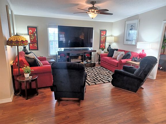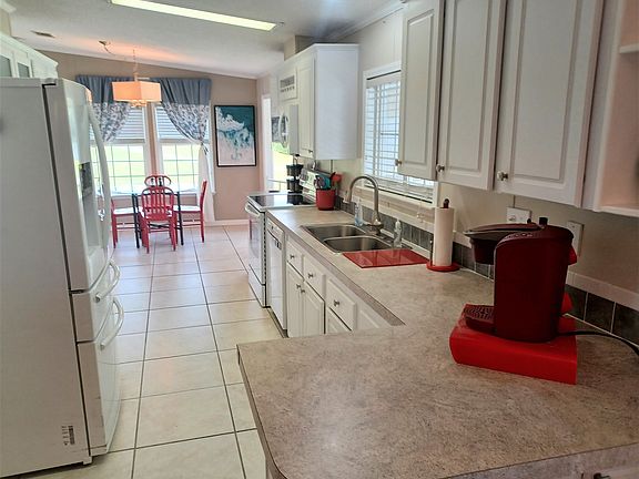 ***This home is located within a 55+ community; age restrictions apply.*** TURNKEY! READY FOR QUICK MOVE IN-FULLY FURNISHED. Meticulously maintained 2004 Fleetwood- This beautiful home is 1512 sf - 2 bedrooms + den and 2 baths. Relax on the lanai with a beautiful golf course view! The den is huge and ready to go to work. The cozy living room has a big screen TV and fireplace, The kitchen is stocked w/dishes & utensils. All doors are 36? for ADA accessible. Master shower redone in 2018. The exterior features custom curbing & extra large driveway. Listing details are provided by homeowner and are not guaranteed. ***