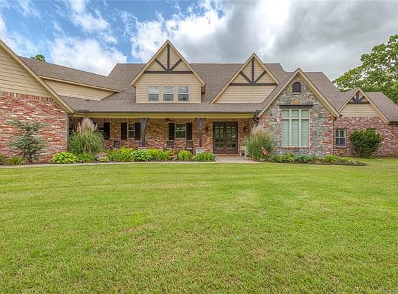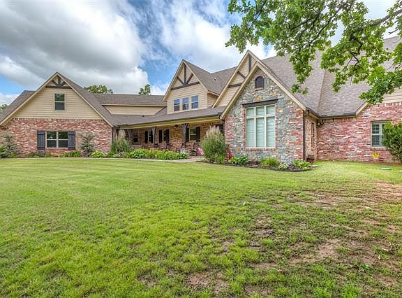 Gorgeous custom farmhouse on 3+ acres! Country feel while only 15 minutes to DT Tulsa. 1,000 square ft of covered porches. Outdoor living at its finest. A beautiful open FP w/lg kitchen, perfect for entertaining. Master bed down and another large bedrm down, w/remaining bedrms up. The utility rm/mudrm complete w/cubbies, an office area, & a dog shower. The property has nature trails & a 30x40 insulated shop w/two extra electric garage door spaces. An entertainer's dream w/quiet living & easy city access.