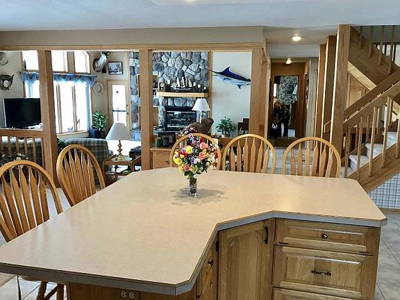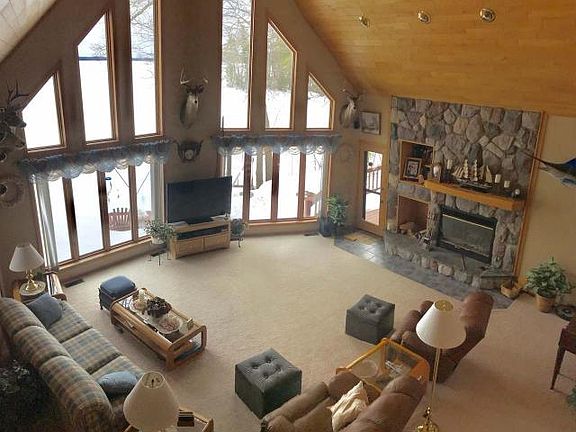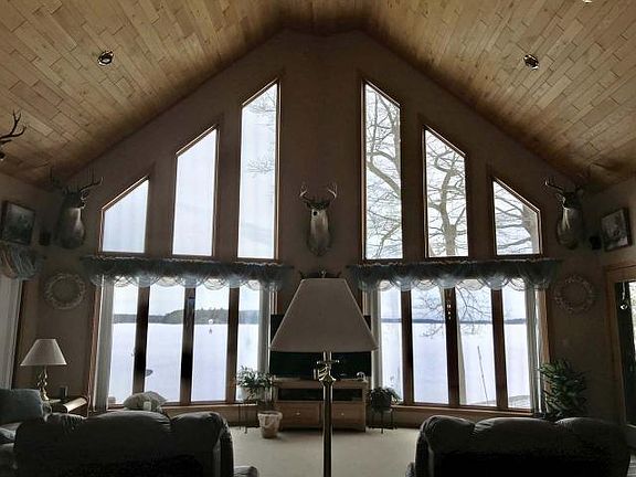 Lake Tomahawk property on the western shoreline in Minocqua. 3,900 sq ft home with towering lakeside windows &150' of level sandy frontage. Built in1998, features 4BR, 3.5BA, main level master & laundry rm, fieldstone FP, lakeside screened porch, & a walkout basement. In addition, this property offers a blacktop driveway, 3 car heated garage w/ add'l 3 car non-heated garage, and a new roof. The property's location makes for a short navigable trip to either downtown Minocqua or the city of Lake Tomahawk. Enjoy many restaurants & attractions the Minocqua chain has to offer. This property has been in the same family for 36 yrs & offers tranquil privacy.. The approach to the property will take you through the Pottawattomie Forest Conservatory Land which encompasses approx. 500 acres of towering mature forest. This property is part of The Pottawattomie Colony that was created in 1939 & carries unique Minocqua area history. The colony members also share private hiking/biking trails.