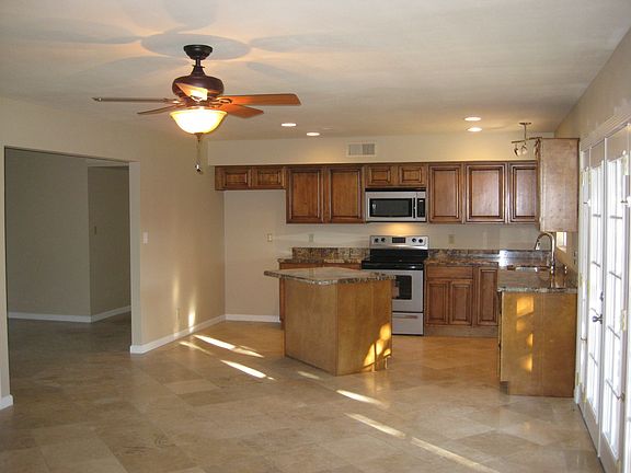 Completely remodeled home in great location! Brand new kitchen cabinetry, granite slab counters, and stainless steel appliances. Brand new baths including jacuzzi tub in master. All new dual pane windows, brand new roof, fresh paint inside and out, travertine floors, all new baseboards and casings, and new lighting and fans throughout. Spacious floorplan w/vaulted ceilings offers separate living and family room. French doors lead to huge backyard! Must see!