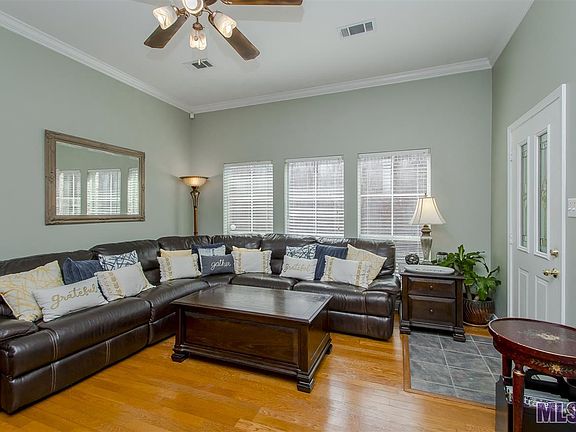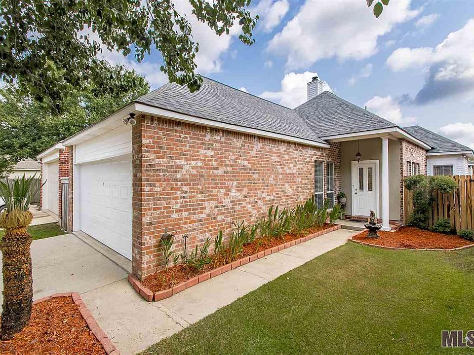 Fantastic find in this well-maintained and recently updated property. Lovely open floor design features beautiful den with center fireplace, wood flooring, and 10 ft ceiling. Beautiful kitchen open to dining area and den. Lots of cabinets with center island. All appliances to remain including refrigerator and microwave. Enjoy recently updated warm and soft colors throughout. New garage door and A.C. unit. Roof is only 2 years old. Conveniently located to interstate, shopping centers, medical centers, lots of great restaurants and parks! Only minutes away from LSU. No flood insurance needed! Qualifies for 100% financing!
