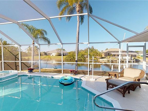 GREAT WATERFRONT LOCATION in South Gulf Cove!!! LOOKING FOR MORE? 3 Bedrooms plus Den, pool /hot tub home on a Canal AND a Seawall. As you walk in the front door, you are greeted with a panoramic view of the canal, entering into the Living Room with Cathedral Ceilings and a Fireplace. Dining Room has a Large Window providing natural light. Master Bedroom, Living Room, Kitchen, and Family Room all have sliding glass doors to the Pool and Lanai. This home features a pool bath and a split bedroom plan with 2 bedrooms and a den on one side of the home with a family room. It would be great for guests or extended family. This home has all the creature comforts for Florida! It's close to Boca Grande and Englewood Beach, shopping and medical facilities.