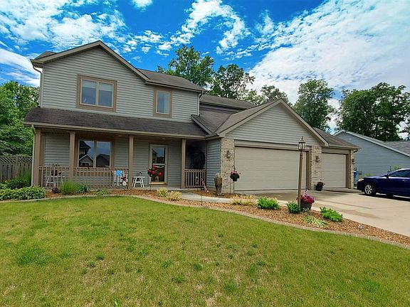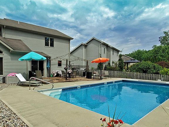 You won't want to miss this amazing two-story featuring an inground pool! Featuring a three car garage, covered front porch and beautiful landscaping in the front, amping up the curb appeal of this four bedroom home. Everything you need to create life's best moments! When you enter the foyer, you will find the stairs to your right and the den to your left. You can enter the eat-in kitchen from both the foyer hallway and the den. The kitchen features a breakfast nook, stainless steel appliances, a breakfast bar and a walk-in pantry. Off to the right are the great room and the entry from the garage. Just past the garage entry door you will find a half bath and the laundry room. The spacious great room features vaulted ceilings and a view of the pool from inside. To get to this pool, you will open the sliding glass doors in the breakfast nook. The patio features stamped and stained concrete. This inground pool is vinyl, heated and has a passcode activated electric pool cover. In the dog days of summer, nothing is as exhilirating as a dip in the pool! The yard is fully fenced in for added safety. Upstairs, the master bedroom is to the right. It has a walk-in closet and full bathroom with double vanities. The upstairs also has three more bedrooms and an additional full bathroom with a tub/shower combination. Take a permanent vacation when you buy this home that is perfect for both relaxing, and entertaining.