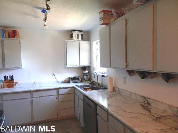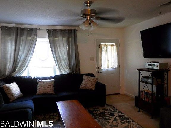 Perfect family starter home with lots of possibilities, unzoned, no HOA, located in Fairhope zip code, but outside the city limits. This 1248 square foot, 4 bedroom, 2 bath, brick home comes with a 32x31 workshop including a heated and cooled 2 room office, a 31x10 area with cement slab that can be used as a garage, and a large open work area. Due to being unzoned, the current owner uses workshop as a service business centrally located to Baldwin county with easy access to Mobile and Pensacola. The grounds have a large enclosed chicken coop with a dedicated water and power source, 2 storage sheds, a covered carport/lean-to, mature fruit bearing trees including 2 satsumas, persimmon, and orange trees, and an underground storm shelter equipped with electricity, water, and a/c. This partially fenced lot is just under an acre with lots of room to grow. Property has its own upgraded well with a whole home filtration system, and efficient septic system. City utilities such as water, sewer, and gas are available for the property through the public utilities companies. The interior of the home has many upgrades. The master bath has with a large garden bathtub/dual shower, a dedicated 50 gallon SMART water heater, and new tile throughout. The bedroom has new carpet, new ceiling fan, coded/tinted/double pane window, and fresh paint. Kitchen/dining nook/pantry has been updated with a new tile floor, ceiling fan, track lighting, resurfaced and painted cabinets, new countertops, and stainless steel appliances-dishwasher, stove and microwave. The pantry/wash area has an option to include the matching stacked LG large capacity washer/dryer with stainless steel finish in the sale. All bedrooms are carpeted, have new ceiling fans and a fresh coat of paint. The second bathroom has a full bathtub, fresh paint, and a new tiled floor. Please see seller's disclosure for detailed list of upgrades or improvements to the home. Home will be sold as-is with no warranties implied.