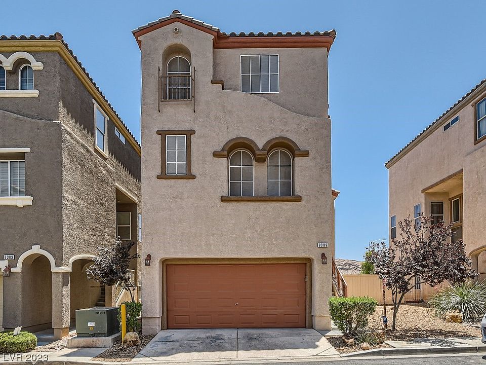 WOW! Enjoy all the benefits of living in the Mountains Edge masterplan without the HOA dues! This 4BR, 3BA, 3 story home w 2 car garage has LOW HOA dues, no masterplan fees! Great Location near the bustling Mountains Edge Masterplan, around the corner from shopping, downtown Summerlin, schools, parks and easy freeway access. Perfect investment or first time home! 3 Story floorplan boasts spacious great room that opens to the kitchen and balcony off the kitchen with GORGEOUS 180 degree MOUNTAIN VIEWS! No homes behind you! Bottom level has private bedroom and 3/4 bath and and extended covered patio for more functional outdoor living space, the top level has the primary suite plus two secondary bedrooms and two full bathrooms. Water smart and Easy to care for landscaping! New dishwasher just installed!HOA dues also included front yard maintenance. HURRY! Won't last long at this price!