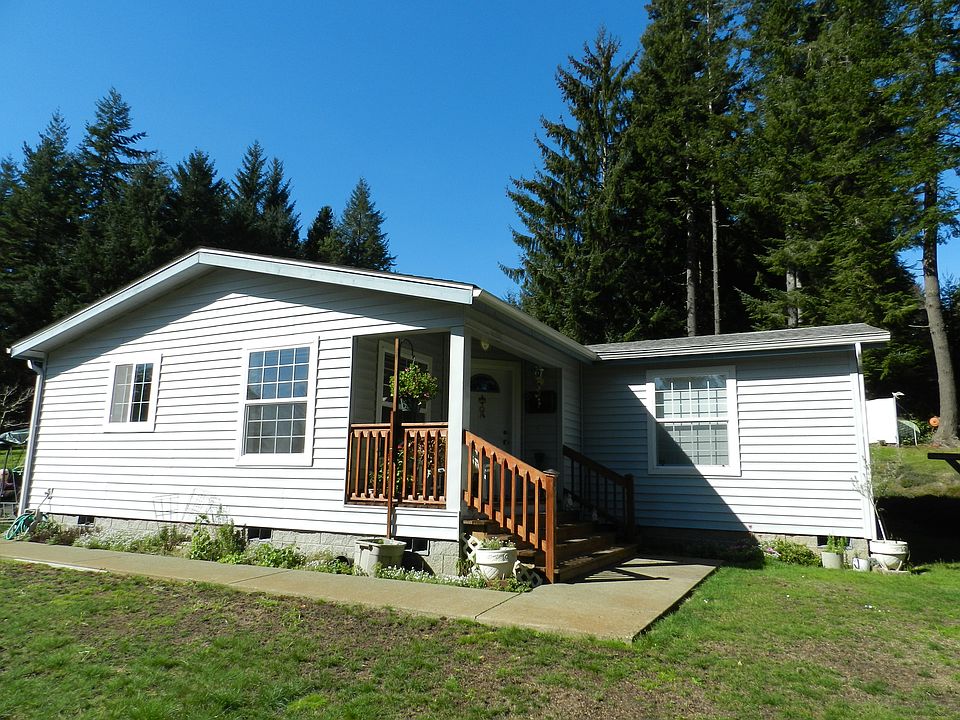 Beautiful 6.36 Acres just outside of town with a spacious 3 bed/ 2 bath Manufactured home. Open floor plan complete with large living room, formal dining room, nice kitchen with extra dining area & sky lights. Large pull-through Shop, Outbuilding & Tool Shed. There is plenty of room for RV Parking & storage. City water & paved road but yet Country setting. Flat, usable land for Garden areas. 2.02 acres is a possible buildable tax lot.